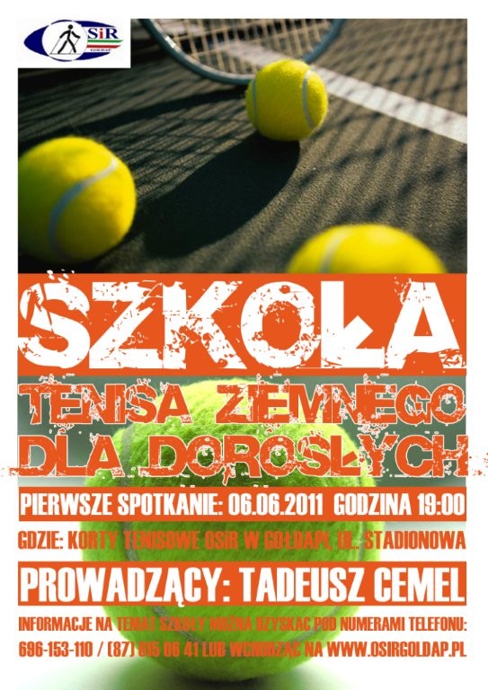Szkoła tenisa ziemnego dla dorosłych to najnowsza propozycja Ośrodka Sportu i Rekreacji skierowana do mieszkańców Gołdapi. Pierwsze zajęcia odbędą się 6 czerwca o godzinie 19.00 na kortach przy stadionie miejskim. Poprowadzi je Tadeusz Cemel.