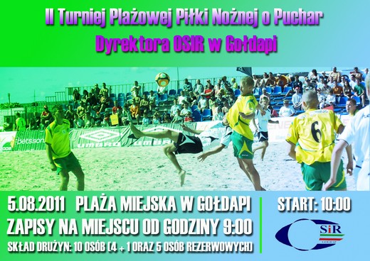 - turniej zostanie rozegrany w dniu 05.08.2011r. (piątek) na plaży miejskiej w Gołdapi, początek o godzinie 10.00; zapisy od 9.00 w dniu turnieju