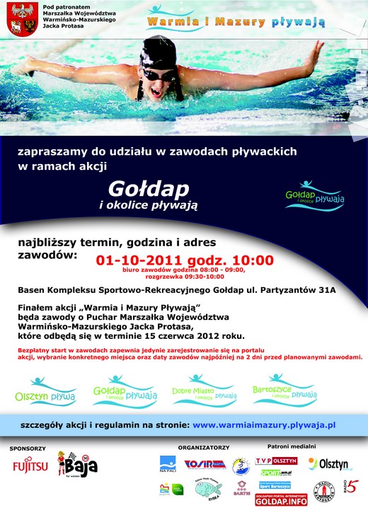Więcej informacji o drugiej edycji „Warmia i Mazury Pływają" w regulaminie zawodów. Patronem medialnym akcji jest Portal GOLDAP.INFO.