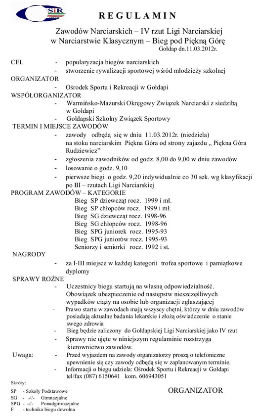 W niedzielę odbędzie się IV rzut Ligi Narciarskiej w Narciarstwie Klasycznym. Zawody odbędą się na stoku narciarskim Pięknej Góry od strony zajazdu. Zgłoszenia zawodników będą przyjmowane w dniu zawodów w godzinach 8.00-9.00, pierwsze starty o 9.20.