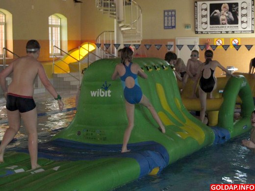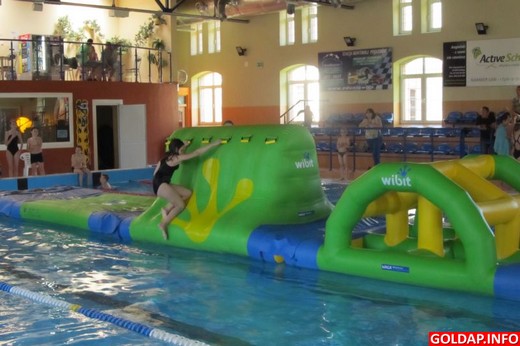 Dziś w Kompleksie Sportowo-Rekreacyjnym odbyły się „Zawody na wesoło". Uczestnicy nie ścigali się jednak w pływaniu, a na specjalnym torze przeszkód Wibit Aqua Track. W kategorii wiekowej 6-13 lat wzięło udział 17 dziewcząt oraz 7 chłopców. Z kolei w kategorii 21 lat i więcej wzięło udział tylko 2 seniorów. Tor gości na pływalni do przyszłej niedzieli, kiedy to odbędą się również zawody indywidualne z możliwością rywalizacji rodzinnej.
