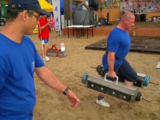 Zawody toczyły się przy zmiennej pogodzie. Było słońce, ale i burza, która przerywała imprezę. Strongmani rywalizowali m.in. podnosząc sztangę o wadze 80kg (ilość powtórzeń), niosąc walizki o wadze 100kg jedna, przenoszenie worków na odległość, kowadło o wadze 200kg połączone z oponą o wadze 300kg.