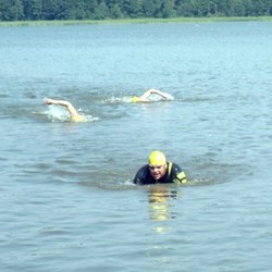 GOŁDAP. Zawody o Puchar Warmii i Mazur w Pływaniu Długodystansowym odbyły się dziś w południe na jeziorze Gołdap. Start i meta znajdowały się na plaży miejskiej. Wystartowały 33 osoby, które do pokonania miały dystans 3000 metrów.