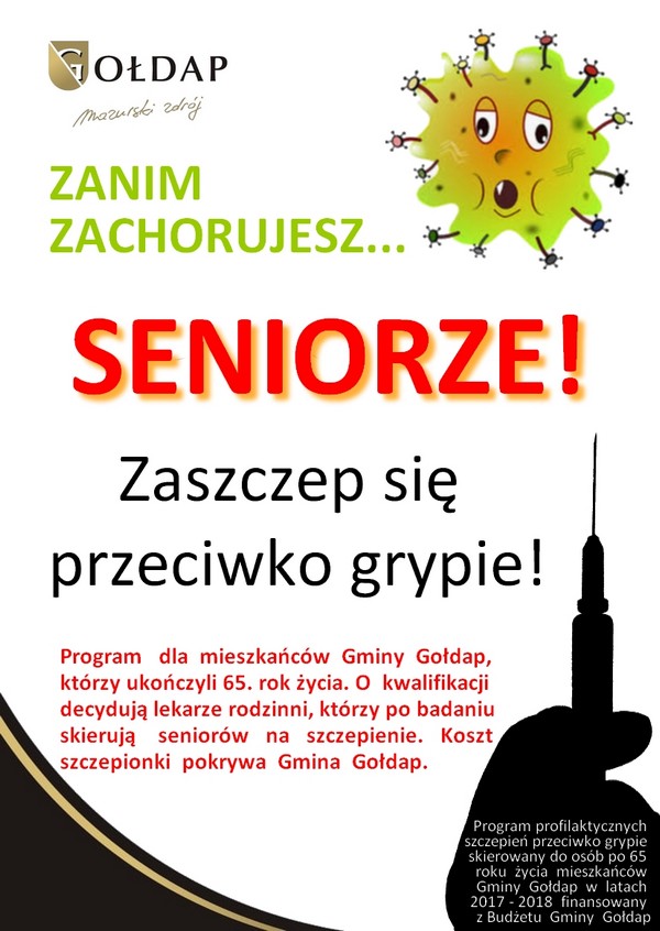 Gmina Gołdap finansuje program szczepień ochronnych przeciwko grypie dedykowany gołdapskim seniorom. Żeby z niego skorzystać, trzeba mieć ukończone 65 lat życia i skontaktować się z lekarzem rodzinnym. Do punktów szczepień do trafiła już pierwsza partia szczepionek.