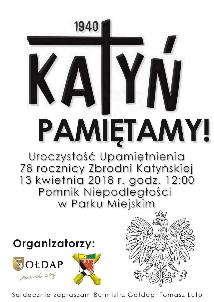 W piątek, 13 kwietnia przypada Dzień Pamięci Ofiar Zbrodni Katyńskiej. Burmistrz Gołdapi Tomasz Luto zaprasza do wspólnego uczczenia pamięci polskich bohaterów.