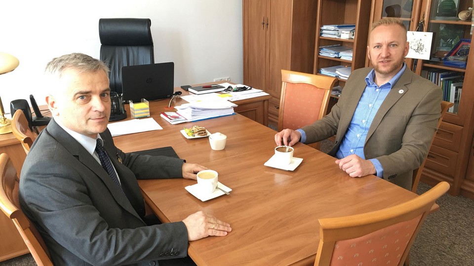Burmistrz Gołdapi Tomasz Luto spotkał się w czwartek, 19 kwietnia, z posłem Andrzejem Maciejewskim. Rozmowa dotyczyła spraw najważniejszych dla przyszłości regionu, czyli rozbudowy i modernizacji sieci drogowej, przywracania połączeń kolejowych oraz innych tematów związanych z rozwojem gospodarczym. Poseł Andrzej Maciejewski zapewniał, że Gołdap jest mu bardzo bliska, a jej samorząd może liczyć na jego pełne poparcie.