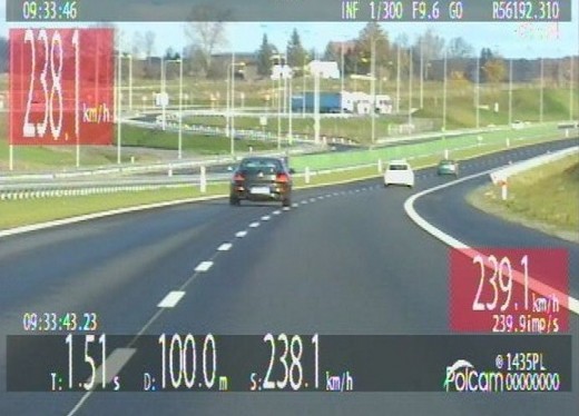 Policjanci z ostródzkiego ruchu drogowego pełniąc służbę na oddanym niedawno do użytku odcinku krajowej S7 zauważyli auto, które z dużą prędkością jechało w kierunku Małdyt. Funkcjonariusze nagrali kierowcę, który zgodnie ze wskazaniem wideorejestratora pędził prawie 240 km/h. Policjanci zatrzymali do kontroli mieszkańca Warszawy, który jak powiedział nie zauważył, że jedzie aż tak szybko.