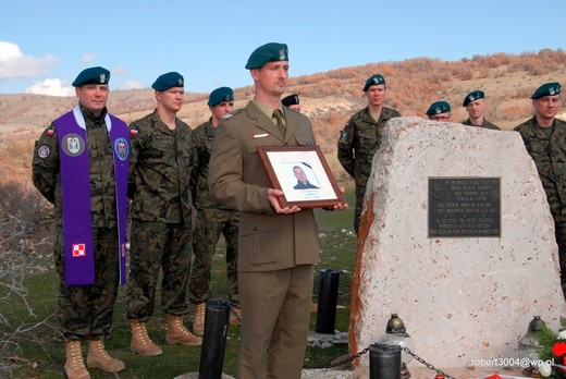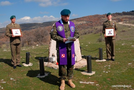- Spotykamy się tutaj aby oddać hołd i cześć pamięci żołnierzom: sierżantowi Pawłowi Legenckiemu oraz sierżantowi Piotrowi Mikułowskiemu, którzy zginęli w tym miejscu marca 2003 roku wykonując zadania mandatowe w ramach misji pokojowej NATO – powiedział ksiądz kapitan Artur Majorek, kapelan XXIX zmiany PKW KFOR. Następnie odmówił modlitwę w intencji poległych żołnierzy. Po modlitwie Dowódca PKW ppłk Tomasz Sawczuk wraz z delegacją w składzie: płk Piotr Kołacz – Starszy Oficer Narodowy z Kwatery Głównej PKW KFOR i ks. kapelan Artur Majorek złożyli wiązankę kwiatów