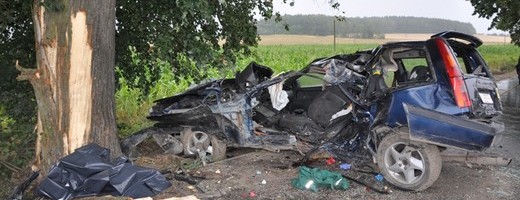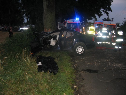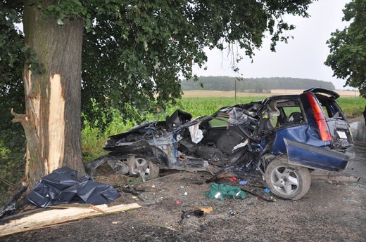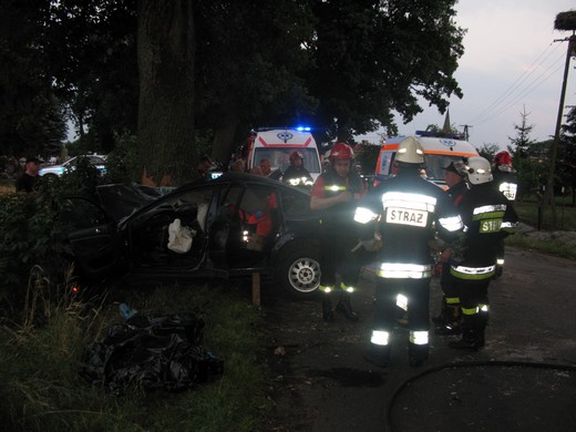 WOJ. WARMIŃSKO-MAZURSKIE. 20 lipca około godz. 20.30 policjanci nowomiejskiej komendy zostali powiadomieni o zdarzeniu drogowym w Biskupcu (powiat nowomiejski). Z ustaleń wynika, że na drodze powiatowej nr P1279 prowadzącej do miejscowości Piotrowice, 24-letni Piotr W. jadący vw passatem na prostym odcinku drogi podczas manewru wyprzedzania innego auta, chcąc uniknąć zderzenia z jadącym naprzeciwka bmw, zjechał na pobocze drogi i uderzył w przydrożne drzewo. W wyniku zdarzenia śmierć na miejscu poniosły dwie osoby tj. kierowca vw oraz 21-letni pasażer. Trzeci z pasażerów, 19-latek został odwieziony do nowomiejskiego szpitala. Miał złamany nos i wybite zęby. Na własne żądanie opuścił szpital. Wyniki badania krwi wskażą, czy kierowca auta był trzeźwy. Samochód zabezpieczono na parkingu strzeżonym do celów procesowych.
