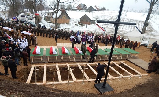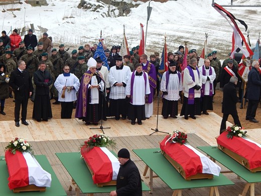 ORŁOWO. 15 lutego w kościele pw. Kazimierza Królewicza w Orłowie (gm. Wydminy, powiat giżycki) odbyły się uroczystości pogrzebowe dziewięciu ekshumowanych żołnierzy 3. Brygady Wileńskiej Narodowego Zjednoczenia Wojskowego, którą dowodził kpt. Romuald Rajs ps. „Bury". Żołnierze polegli 16 lutego 1946r. w bitwie pod Gajrowskimi w walce z przeważającymi oddziałami NKWD, UB i MO. Słowo wstępne wygłosił historyk i publicysta Leszek Żebrowski. Następnie odprawiona została uroczysta msza święta, której przewodniczył bp Jerzy Mazur. Ceremonia pogrzebowa na miejscowym cmentarzu odbyła się z honorami wojskowymi w asyście kompanii honorowej z 15. Brygady Zmechanizowanej z Giżycka. W podniosłych uroczystościach wzięli udział tutejsi mieszkańcy, rodziny poległych żołnierzy, władze samorządowe, duchowieństwo, kombatanci, grupy rekonstrukcji historycznej oraz organizacje patriotyczne. Nie zabrakło też przedstawicieli powiatu gołdapskiego: wicestarosty Grażyny Sendy, wiceprzewodniczącego rady powiatu Bogdana Michnicza i członek zarządu powiatu Andrzeja Osińskiego. Na cmentarzu w Orłowie, zgodnie z decyzjami władz gminy Wydminy, planowana jest budowa Panteonu Żołnierzy Niezłomnych. Mają zostać w nim pochowani wszyscy żołnierze polegli podczas bitwy pod Gajrowskimi. Jego uroczyste odsłonięcie zaplanowano w 70. rocznicę bitwy – 16 lutego 2016r.