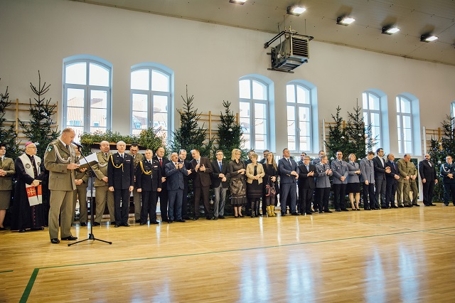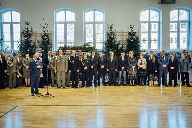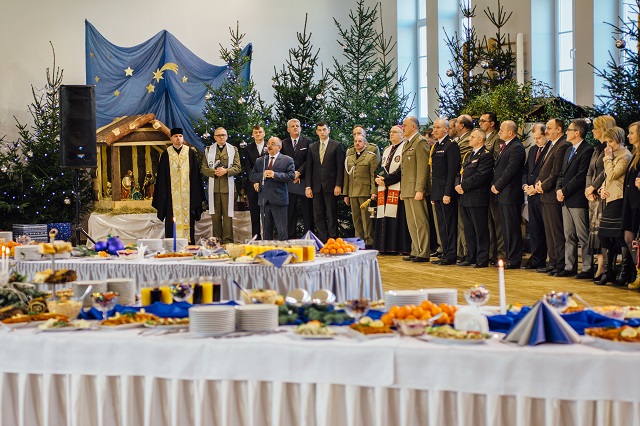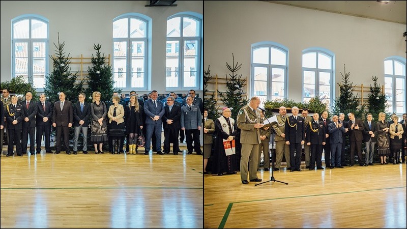 Jako jeden z pierwszych świąteczne życzenia złożył organizator spotkania komendant WMOSG płk SG Tomasz Semeniuk. W ten szczególny dzień życzył wszystkim świąt rodzinnych, wypełnionych radością, niosących spokój i odpoczynek. Podziękował przedstawicielom administracji rządowej oraz wszystkim służbom za owocną współpracę ze strażą graniczną. Życzenia świąteczne złożyli również wicemarszałek Miron Sycz. W imieniu wojewody życzenia wszystkim zgromadzonym przy wigilijnym stole przekazał Grzegorz Kierozalski. Modlitwę poprowadził arcybiskup koadiutor Józef Górzyński wraz z kapłanami innych wyznań. Podczas uroczystości uczniowie jednej z kętrzyńskich szkół przekazali komendantowi WMOSG światełko betlejemskie. Wigilijne spotkanie uświetnił występ chóru dzieci ze szkoły podstawowej nr 4 w Kętrzynie „Kętrzyńskie Słowiki”.