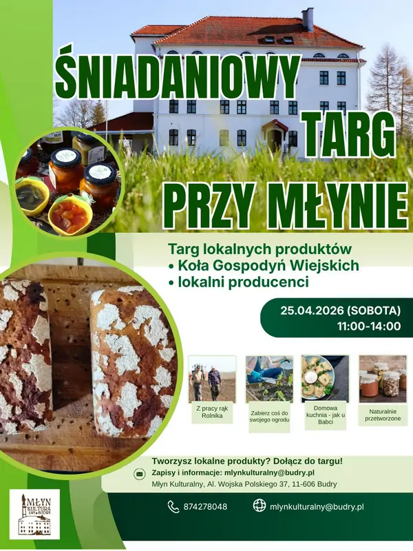 Jeśli tworzysz unikalne produkty, pieczesz, gotujesz lub zajmujesz się rękodziełem, wciąż możesz dołączyć do wydarzenia. Oferta ta skierowana jest również do osób oraz podmiotów z powiatu gołdapskiego. Koszt wystawienia stoiska to 50 złotych. Zgłoszenia przyjmowane są pocztą elektroniczną pod adresem mlynkulturalny@budry.pl lub telefonicznie pod numerem telefonu 87-427-80-48.