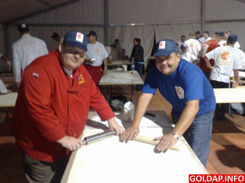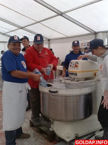 Około 200 kucharzy podjęło dziś w Krakowie próbę bicia rekordu Guinnesa w pieczeniu najdłuższej pizzy świata. Wśród nich jest dwoje przedstawicieli Gołdapi: Mirosław Rudziewicz, właściciel Centrum Sportowo-Rekreacyjnego „Piękna Góra" Rudziewicz i Jacek Jakubowski, szef kuchni w Zajeździe „Piękna Góra".