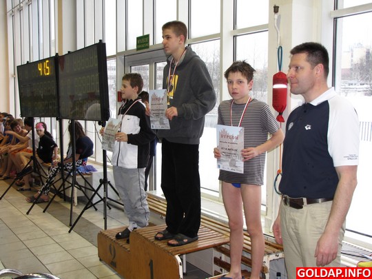 Nasze miasto reprezentowało dwóch pływaków: Igor Becz i Mateusz Sztuk. Do Gołdapi przywieźli oni brązowy medal, który wywalczył Mateusz w wyścigu na 50 metrów stylem motylkowym w kategorii 12-latków. Igor w wyścigu na 50 metrów stylem dowolnym i 100 metrów stylem zmiennym zajął 4 miejsca, choć - jak potwierdza trener młodych pływaków Adam Kozłowski - życiowe wyniki chłopców są wyższe niż zaprezentowali podczas zawodów w Olsztynie. Należy dodać, że były to ich pierwsze „poważne" zawody pływackie, dlatego też stres oraz brak doświadczenia w rywalizacji na wojewódzkim poziomie wpłynęło w pewnym stopniu na obniżenie formy chłopców. W ocenie trenera chłopcy przeszli „chrzest" pozytywnie. Wierzy on w swoich podopiecznych i ich ogromne sukcesy w przyszłości, gdyż wie, jak ogromny wysiłek i dużo czasu poświęcają pływaniu.