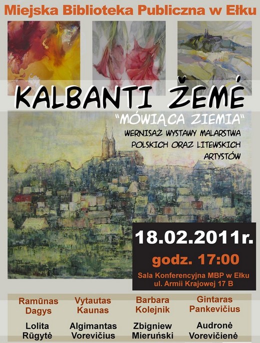 W piątek w Miejskiej Bibliotece Publicznej w Ełku otwarta zostanie wystawa pt. „Mówiąca Ziemia". Swoje prace malarskie zaprezentują artyści polscy i litewscy, w tym gołdapianie Zbigniew Mieruński i Barbara Kolejnik.